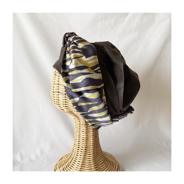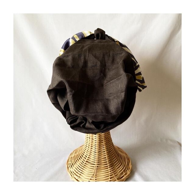 リネン100%の生地に、スカーフ柄を合わせたY様専用のターバンです。