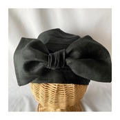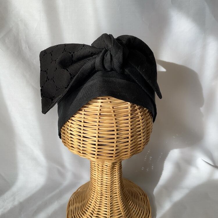 リネン100%生地ブラック×サークルレース